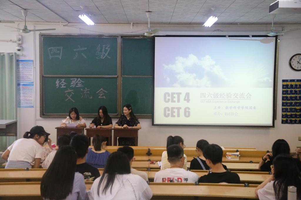 6月2日下午,由金沙集团wwW3354CC团委举办的“备战四六级,扬帆迎成功”四六级经验交流会在数学楼101教室成功举办。来自17级的四六级成绩优秀学生毕钰、李江敏、李汇为在座同学做交流分享。