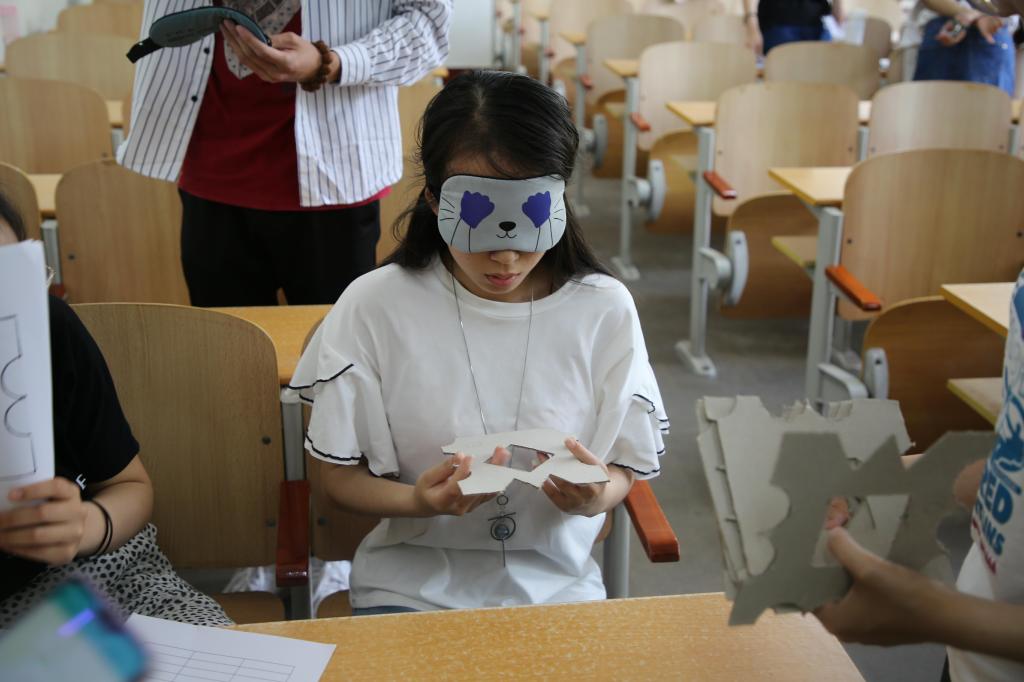在赛前准备中,相关工作人员根据我院学生学习特点设计不同的游戏类型,针对记忆、思维、手速与熟练程度设计数学图形记忆找原图、蒙眼摸图形特点并找出原图、数学图形连连看、记忆与排序、说出数学图形名称等六大游戏类型。其中记忆环节中,同学们限时记忆数学图形的排列顺序,通过超强的记忆力在打乱的图形中将其找出并排列。蒙眼摸图环节,同学们通过触感将图形卡片的形状在脑海中形成印象,随后与图片快速匹配。连连看环节,同学们眼速与手速齐飞,在极短的时间内完成游戏,记录不断被刷新着,参赛选手纷纷表示自己在游戏中体会到了数学的创意、激情与乐趣。