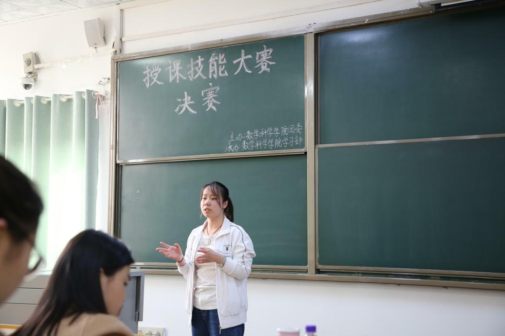 3月27日下午,由金沙集团wwW3354CC团委主办的授课技能大赛决赛在数学楼201教室成功举办。李本星、刘国华、张彬老师以及第六届山东省师范类高校从业技师大赛一等奖获得者张中琪和第三届曲阜师范大学“大智杯”授课技能大赛数科院代表尹文荣担任此次评委。