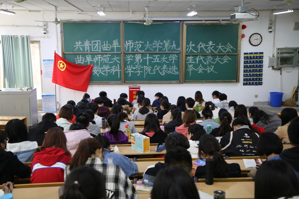 3月13日下午共青团曲阜师范大学第九次代表大会暨第十五次学生代表大会金沙集团wwW3354CC代表选举会议在教学楼101教室圆满举行。学院团委书记朱伟卫,研究生代表,学生会成员和部分学生代表参加此次会议。