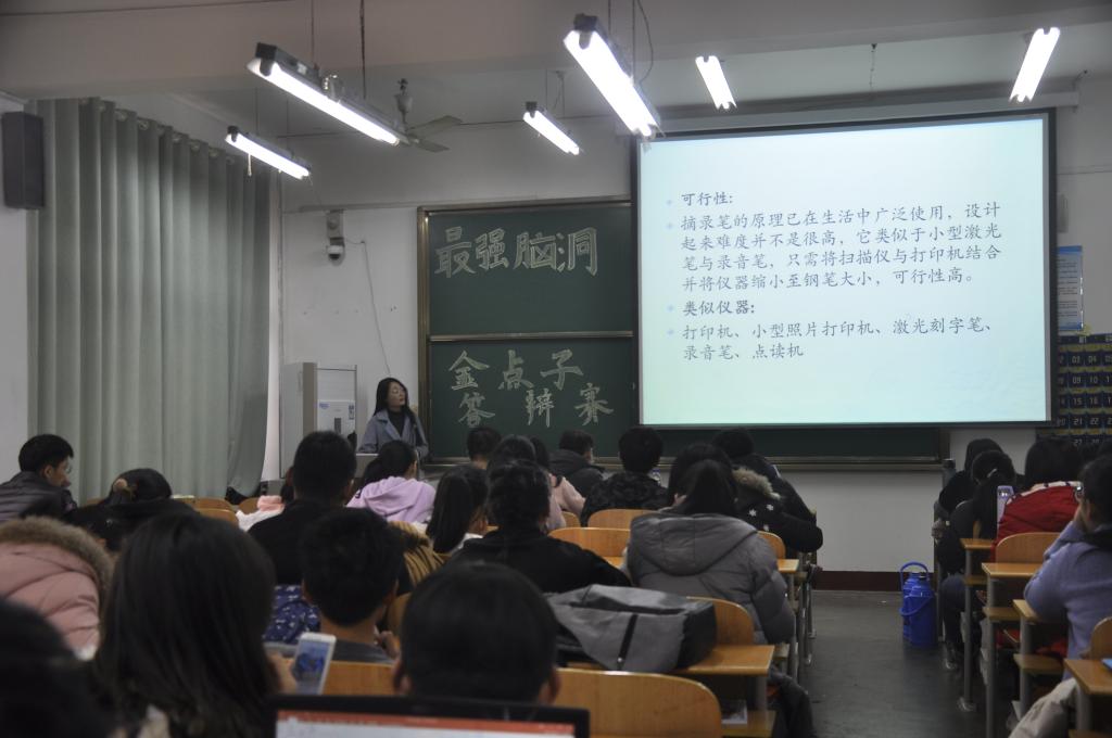 12月22日下午2点半,由金沙集团wwW3354CC团委主办的最强脑洞——金点子答辩赛在教学楼104教室成功举行。