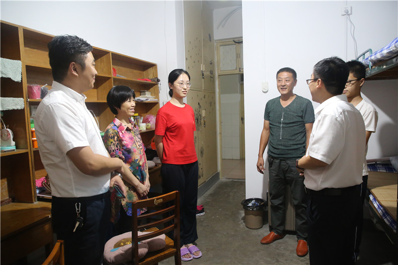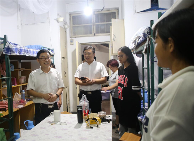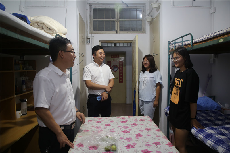 为了深入了解新生入学情况,帮助新生适应大学生活,9月7日晚,金沙集团wwW3354CC党委副书记曲凤东和2019级新生辅导员徐腾飞特意走访新生宿舍,为同学们送去亲切的关怀。