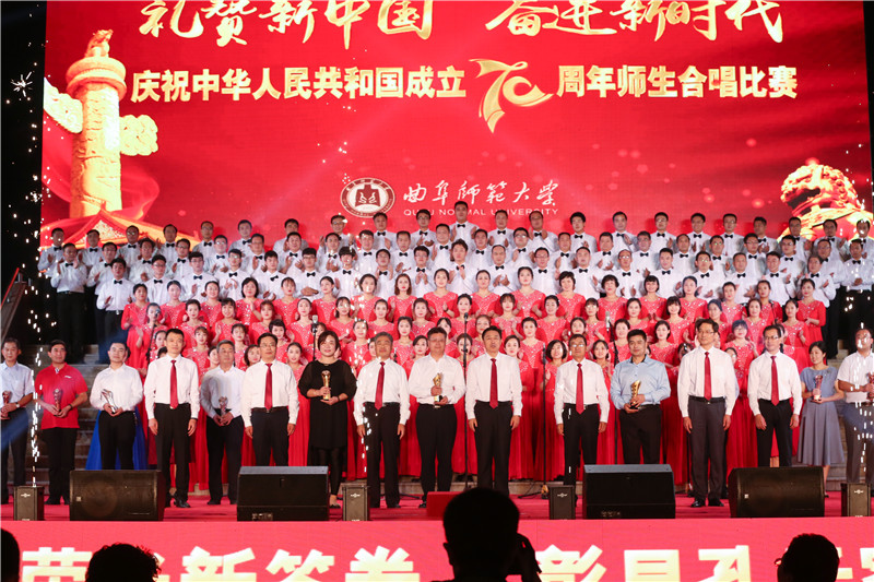 为隆重庆祝中华人民共和国成立70周年,热情讴歌党的光辉历程和丰功伟绩,唱响新时代,弘扬红色文化,传播红色记忆,9月27日晚7时,曲阜师范大学“礼赞新中国,奋进新时代”庆祝中华人民共和国成立70周年师生合唱比赛于孔子文化广场隆重召开,全校师生满怀豪情、以歌言志、以乐寄情,讴歌新中国建设的伟大成就,向中华人民共和国成立70周年献礼,经过金沙集团wwW3354CC师生代表的共同努力,最终取得一等奖优异成绩。