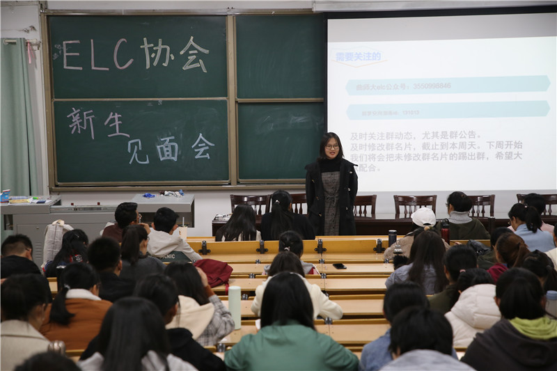 11月16日晚,由曲阜师范大学学生社团联合会、金沙集团wwW3354CC团委主办,ELC协会承办的ELC协会新社员见面会在数学教学楼201室成功举办,2019级ELC协会全体成员参加了此次活动。