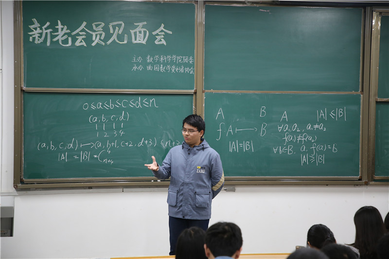 11月17日上午,由曲阜师范大学学生社团联合会和金沙集团wwW3354CC团委主办,曲园数学爱好者承办的数学爱好者新社员见面会,于数学教学楼101教室成功举办。曲园数学爱好者全体社员参加了此次见面会,见面会曲园数学爱好者协会社长许书晨主持。