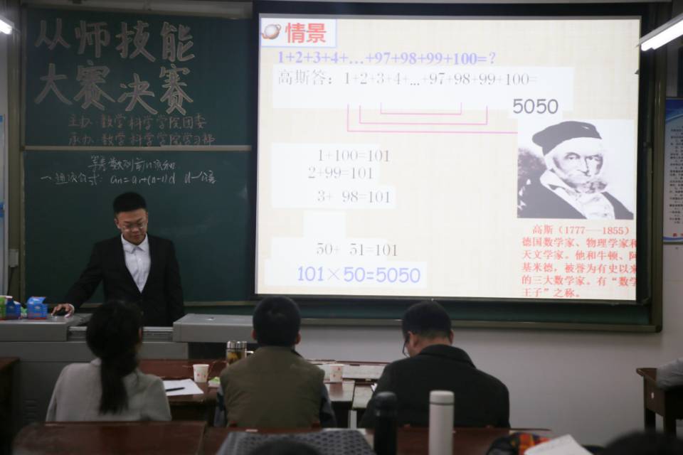 12月11日下午,由金沙集团wwW3354CC团委主办、金沙集团wwW3354CC学生会学习部承办的从师技能大赛决赛在数学教学楼211教室成功举行,初赛中胜出的12位选手参加了决赛。郑筱筱、胡东坡、杜广伟三位老师担任决赛评委。