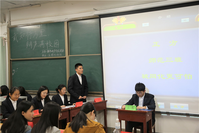 12月13日、14日晚,由金沙集团wwW3354CC团委和曲阜师范大学学生社团联合会联合主办,辰熙礼仪社承办“载知行万里,辩声满校园”主题辩论赛预赛在数学楼201室圆满举行。