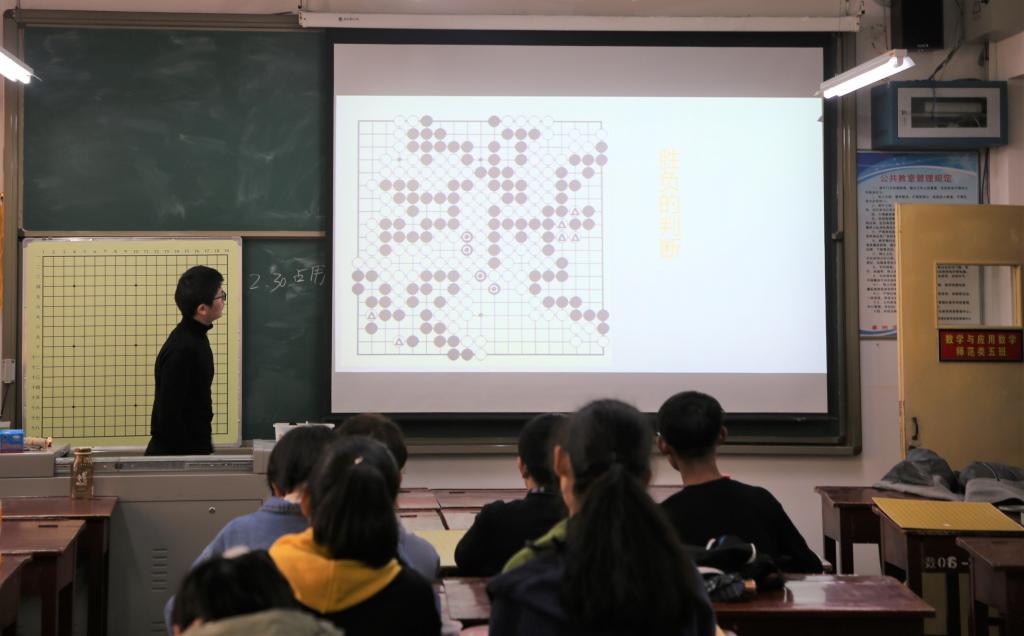 活动开始,围棋领队首先做自我介绍,说明此次活动的意义和目的以及长期的整体规划。他以幻灯片的形式介绍了围棋的发展史和演义史,并且详细介绍了围棋的走位与比赛规则,采用实战模拟、小组课堂、角色互换等方式,让同学们切身体会到围棋的乐趣,了解下围棋的技巧。最后,成员们分享了自己的学习心得并且认真做好学习记录。