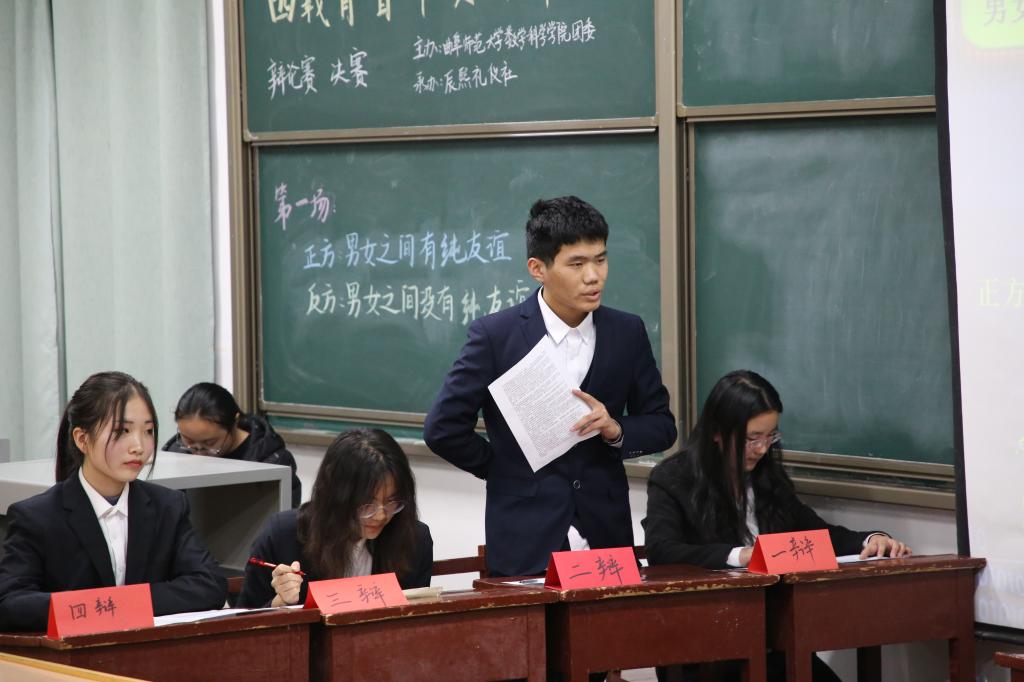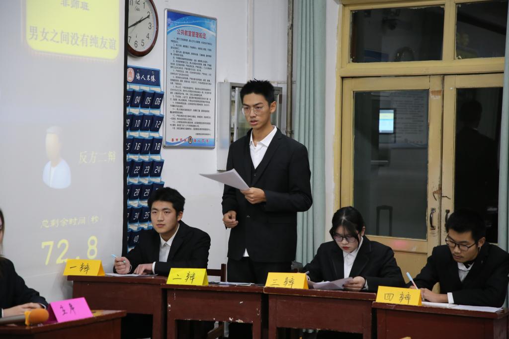 决赛共分两场,第一场正方师范三班对战反方师范五班,就“九九八十一难最后一难是吃肉,唐僧吃还是不吃”展开辩论;第二场正方师范五班对战反方非师班,就“男女生之间有没有纯友谊”展开辩论。大赛开始,双方辩手便展开了激烈的辩论,无论是开篇立论环节还是自由辩论环节亦或是总结陈词环节,双方辩手都作了充分的准备。良好的风范、出色的口才、敏捷的思维令场下观众为之折服,掌声不断。